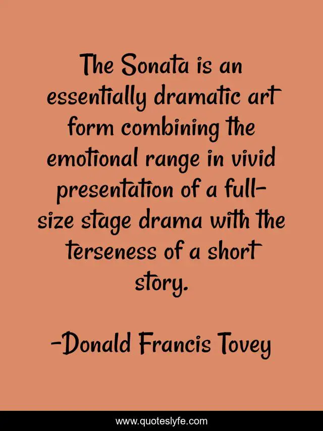 This page presents the quote "The Sonata is an essentially dramatic art form combining the emotional range in vivid presentation of a full-size stage drama with the terseness of a short story.". Author of this quote is Donald Francis Tovey. .