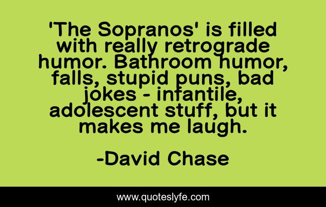 This page presents the quote "'The Sopranos' is filled with really retrograde humor. Bathroom humor, falls, stupid puns, bad jokes - infantile, adolescent stuff, but it makes me laugh.". Author of this quote is David Chase. This quote is about me, stupid, laugh,.