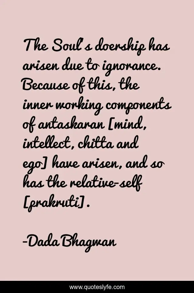 "Dada Bhagwan Quotes." Quoteslyfe.com, 2025. Mon. 08 Dec. 2025. <https://www.quoteslyfe.com/quote/The-Soul-s-doership-has-arisen-due-63237>.