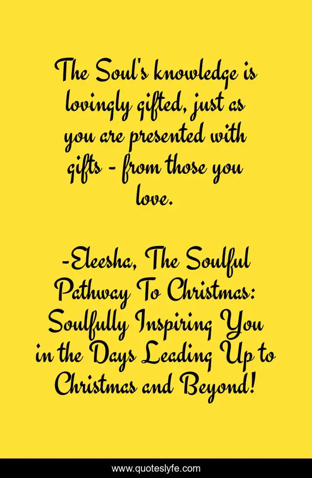 "Eleesha, The Soulful Pathway To Christmas: Soulfully Inspiring You in the Days Leading Up to Christmas and Beyond! Quotes." Quoteslyfe.com, 2025. Fri. 05 Dec. 2025. <https://www.quoteslyfe.com/quote/The-Soul-s-knowledge-is-lovingly-gifted-205011>.