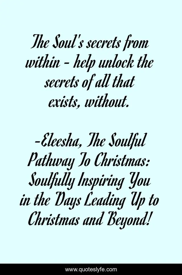 "Eleesha, The Soulful Pathway To Christmas: Soulfully Inspiring You in the Days Leading Up to Christmas and Beyond! Quotes." Quoteslyfe.com, 2025. Fri. 05 Dec. 2025. <https://www.quoteslyfe.com/quote/The-Soul-s-secrets-from-within-help-205045>.