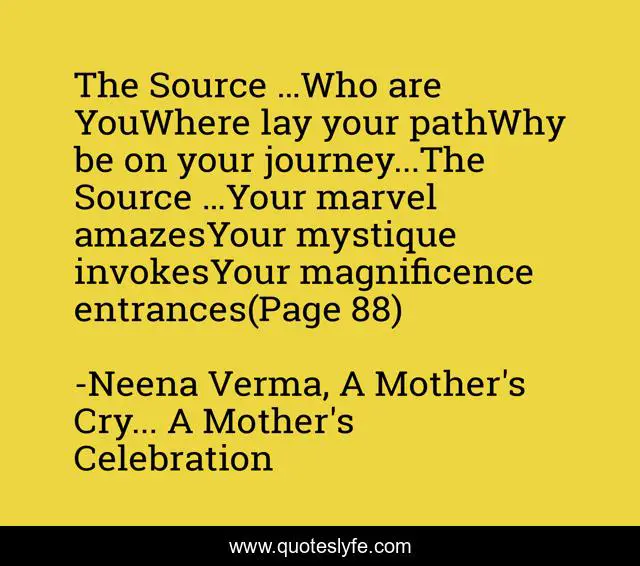 "Neena Verma, A Mother's Cry... A Mother's Celebration Quotes." Quoteslyfe.com, 2025. Sat. 06 Dec. 2025. <https://www.quoteslyfe.com/quote/The-Source-Who-are-YouWhere-lay-your-174438>.