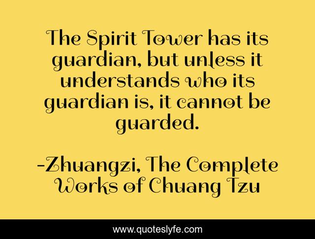 This page presents the quote "The Spirit Tower has its guardian, but unless it understands who its guardian is, it cannot be guarded.". Author of this quote is Zhuangzi, The Complete Works of Chuang Tzu. This quote is about tao, guardian, mind, soul, taoism, spirit, spirit-tower,.