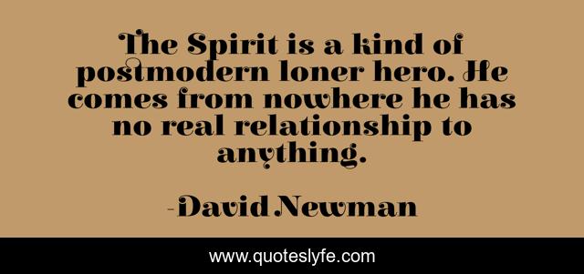 This page presents the quote "The Spirit is a kind of postmodern loner hero. He comes from nowhere he has no real relationship to anything.". Author of this quote is David Newman. This quote is about real, kind, hero,.
