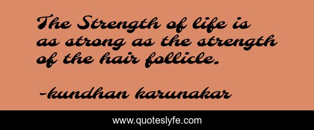 This page presents the quote "The Strength of life is as strong as the strength of the hair follicle.". Author of this quote is kundhan karunakar. This quote is about inspirational-life, life, life-lessons, life-sayings,.