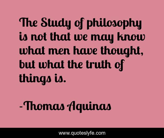 This page presents the quote "The Study of philosophy is not that we may know what men have thought, but what the truth of things is.". Author of this quote is Thomas Aquinas. This quote is about philosophy, medieval,.