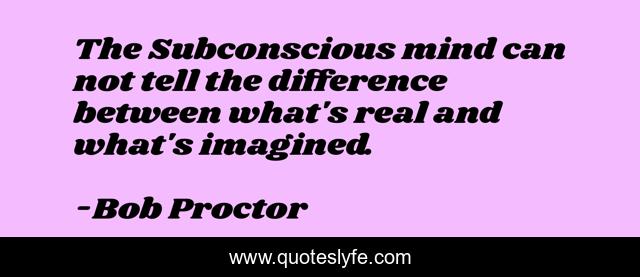 This page presents the quote "The Subconscious mind can not tell the difference between what's real and what's imagined.". Author of this quote is Bob Proctor. This quote is about psychological, imagination, subconscious, subconscious-mind-power,.