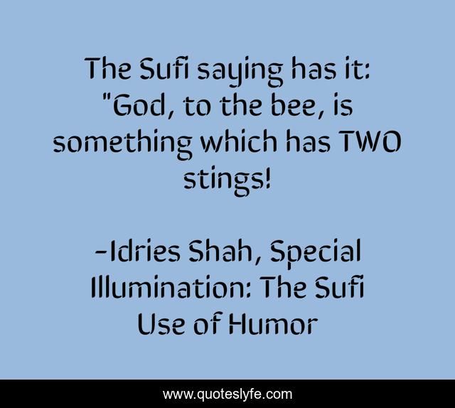 This page presents the quote "The Sufi saying has it: "God, to the bee, is something which has TWO stings!". Author of this quote is Idries Shah, Special Illumination: The Sufi Use of Humor. This quote is about psychology, humour, sufism, god, religion, sufis,.