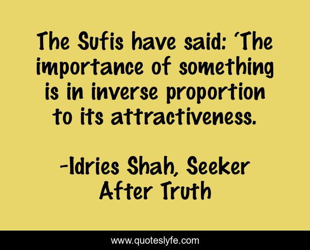 This page presents the quote "The Sufis have said: ‘The importance of something is in inverse proportion to its attractiveness.". Author of this quote is Idries Shah, Seeker After Truth. This quote is about sufism, evolution, sufis, wisdom,.