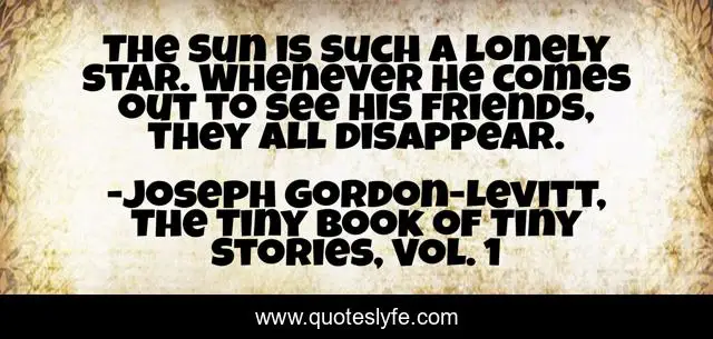 This page presents the quote "The Sun is such a lonely star. Whenever he comes out to see his friends, they all disappear.". Author of this quote is Joseph Gordon-Levitt, The Tiny Book of Tiny Stories, Vol. 1. This quote is about sun, loneliness, friendship,.
