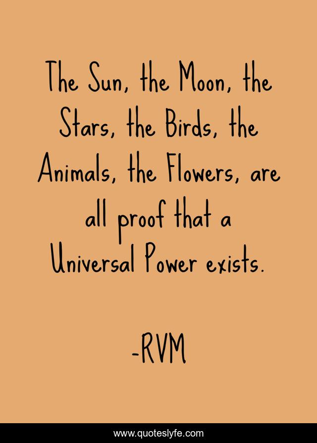 This page presents the quote "The Sun, the Moon, the Stars, the Birds, the Animals, the Flowers, are all proof that a Universal Power exists.". Author of this quote is RVM. This quote is about motivation, inspiration,.
