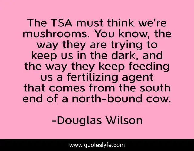 "Douglas Wilson Quotes." Quoteslyfe.com, 2025. Fri. 05 Dec. 2025. <https://www.quoteslyfe.com/quote/The-TSA-must-think-we-re-mushrooms-54558>.