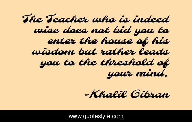 "Khalil Gibran Quotes." Quoteslyfe.com, 2025. Fri. 05 Dec. 2025. <https://www.quoteslyfe.com/quote/The-Teacher-who-is-indeed-wise-does-14750>.