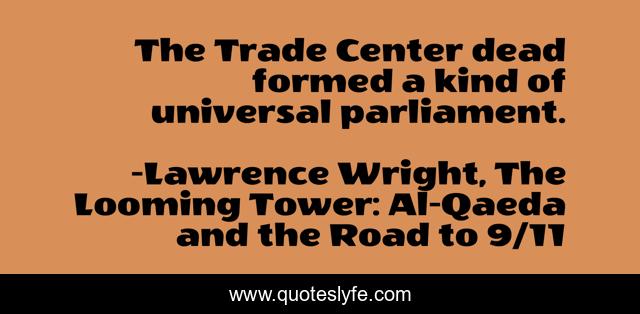 "Lawrence Wright, The Looming Tower: Al-Qaeda and the Road to 9/11 Quotes." Quoteslyfe.com, 2025. Fri. 05 Dec. 2025. <https://www.quoteslyfe.com/quote/The-Trade-Center-dead-formed-a-kind-143740>.