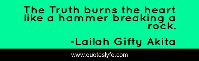 This page presents the quote "The Truth burns the heart like a hammer breaking a rock.". Author of this quote is Lailah Gifty Akita. This quote is about burning-fire, humorous, wisdom, religion, christain, truth, rock,.