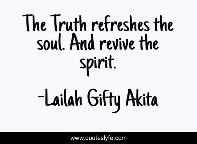 This page presents the quote "The Truth refreshes the soul. And revive the spirit.". Author of this quote is Lailah Gifty Akita. This quote is about religion, christian, soul, truth, spirit,.
