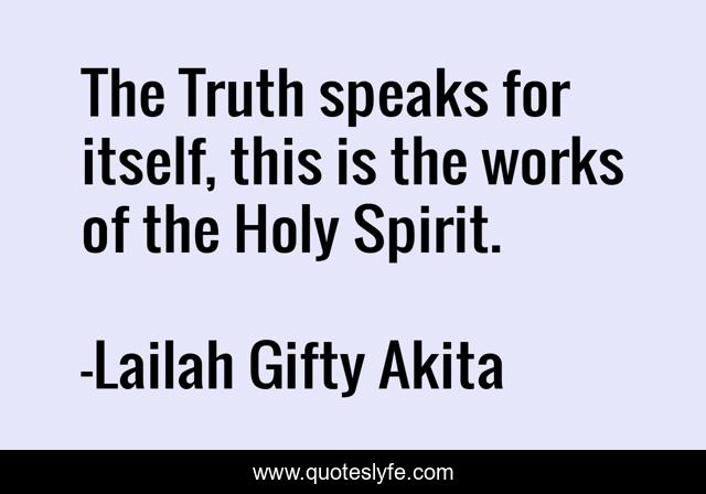 This page presents the quote "The Truth speaks for itself, this is the works of the Holy Spirit.". Author of this quote is Lailah Gifty Akita. This quote is about christian, inspiring, divine-works, truth, holy-spirit,.