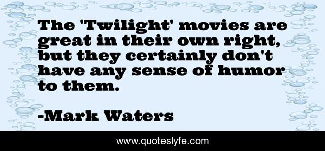 This page presents the quote "The 'Twilight' movies are great in their own right, but they certainly don't have any sense of humor to them.". Author of this quote is Mark Waters. This quote is about movies, great,.