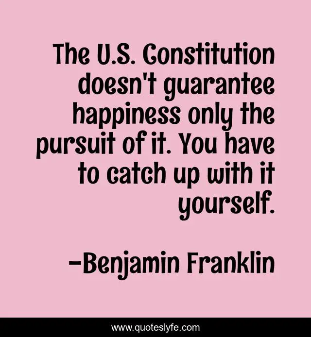 This page presents the quote "The U.S. Constitution doesn't guarantee happiness only the pursuit of it. You have to catch up with it yourself.". Author of this quote is Benjamin Franklin. This quote is about self, reliance,.