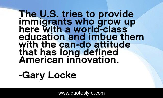 This page presents the quote "The U.S. tries to provide immigrants who grow up here with a world-class education and imbue them with the can-do attitude that has long defined American innovation.". Author of this quote is Gary Locke. This quote is about education, innovation,.
