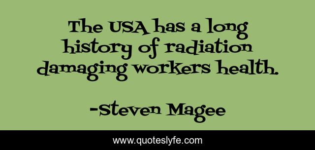 This page presents the quote "The USA has a long history of radiation damaging workers health.". Author of this quote is Steven Magee. This quote is about usa, workers, radiation, osha, health, damaging, history,.