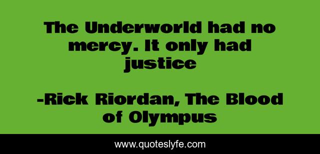 This page presents the quote "The Underworld had no mercy. It only had justice". Author of this quote is Rick Riordan, The Blood of Olympus. This quote is about justice, mercy, bryce-lawrence, nico-di-angelo, underworld,.