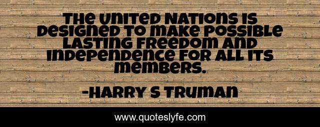 This page presents the quote "The United Nations is designed to make possible lasting freedom and independence for all its members.". Author of this quote is Harry S Truman. This quote is about freedom, united nations,.