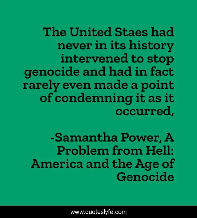 "Samantha Power, A Problem from Hell: America and the Age of Genocide Quotes." Quoteslyfe.com, 2025. Mon. 08 Dec. 2025. <https://www.quoteslyfe.com/quote/The-United-Staes-had-never-in-its-57281>.