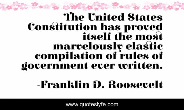 This page presents the quote "The United States Constitution has proved itself the most marvelously elastic compilation of rules of government ever written.". Author of this quote is Franklin D. Roosevelt. This quote is about rules, united, constitution,.