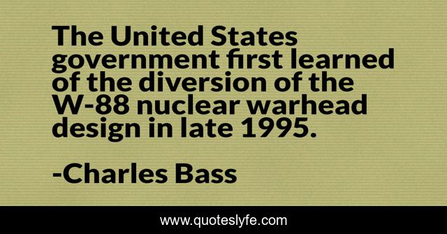 This page presents the quote "The United States government first learned of the diversion of the W-88 nuclear warhead design in late 1995.". Author of this quote is Charles Bass. This quote is about late, government, first,.
