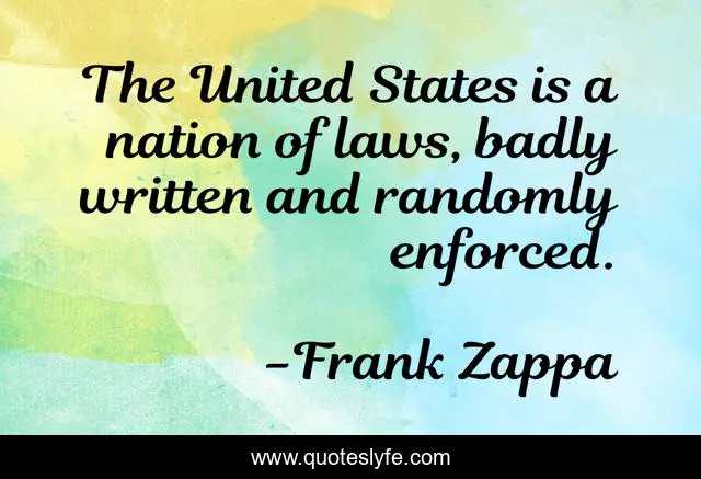 This page presents the quote "The United States is a nation of laws, badly written and randomly enforced.". Author of this quote is Frank Zappa. .