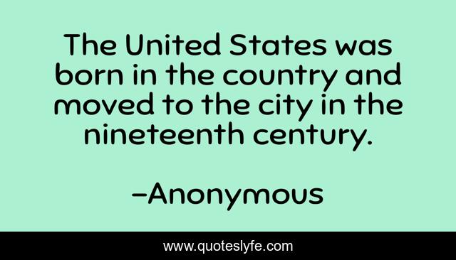 This page presents the quote "The United States was born in the country and moved to the city in the nineteenth century.". Author of this quote is Anonymous. This quote is about america, americans,.