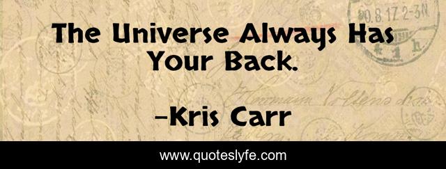 "Kris Carr Quotes." Quoteslyfe.com, 2025. Mon. 08 Dec. 2025. <https://www.quoteslyfe.com/quote/The-Universe-Always-Has-Your-Back-248630>.