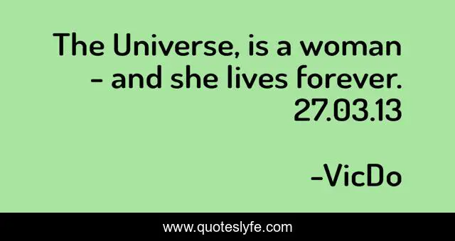 This page presents the quote "The Universe, is a woman - and she lives forever. 27.03.13". Author of this quote is VicDo. This quote is about universe, woman,.