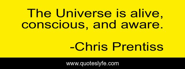 This page presents the quote "The Universe is alive, conscious, and aware.". Author of this quote is Chris Prentiss. This quote is about inspire, consciousness, universe, alive, chris-prentiss, quotes, awareness,.