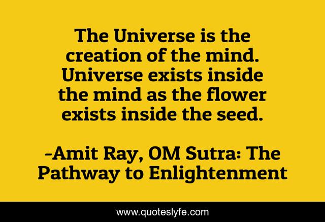 This page presents the quote "The Universe is the creation of the mind. Universe exists inside the mind as the flower exists inside the seed.". Author of this quote is Amit Ray, OM Sutra: The Pathway to Enlightenment. This quote is about creation-of-mind, universe, inspirational, enthusiasm,.