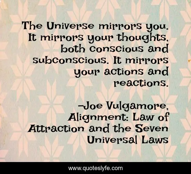 "Joe Vulgamore, Alignment: Law of Attraction and the Seven Universal Laws Quotes." Quoteslyfe.com, 2025. Mon. 08 Dec. 2025. <https://www.quoteslyfe.com/quote/The-Universe-mirrors-you-It-mirrors-your-214803>.
