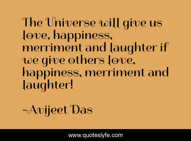 This page presents the quote "The Universe will give us love, happiness, merriment and laughter if we give others love, happiness, merriment and laughter!". Author of this quote is Avijeet Das. This quote is about merriment, love, universe, life, inspiring, happiness, laughter, affection,.