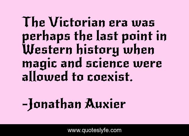 This page presents the quote "The Victorian era was perhaps the last point in Western history when magic and science were allowed to coexist.". Author of this quote is Jonathan Auxier. This quote is about science, magic, victorian-era,.