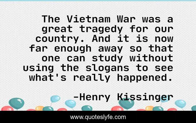 This page presents the quote "The Vietnam War was a great tragedy for our country. And it is now far enough away so that one can study without using the slogans to see what's really happened.". Author of this quote is Henry Kissinger. This quote is about study, great, tragedy,.