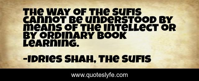 This page presents the quote "The Way of the Sufis cannot be understood by means of the intellect or by ordinary book learning.". Author of this quote is Idries Shah, The Sufis. This quote is about evolution, knowledge, mind, sufism, learning, intellectuals, sufis, psychology,.