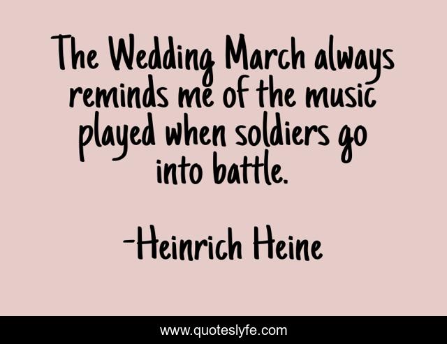 This page presents the quote "The Wedding March always reminds me of the music played when soldiers go into battle.". Author of this quote is Heinrich Heine. This quote is about battle, me, wedding,.