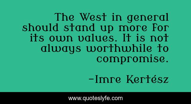 This page presents the quote "The West in general should stand up more for its own values. It is not always worthwhile to compromise.". Author of this quote is Imre Kertész. This quote is about compromise, the-west, values,.