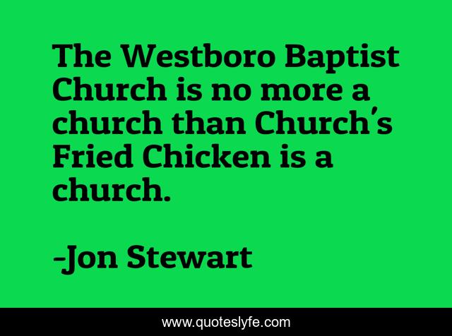 This page presents the quote "The Westboro Baptist Church is no more a church than Church's Fried Chicken is a church.". Author of this quote is Jon Stewart. .