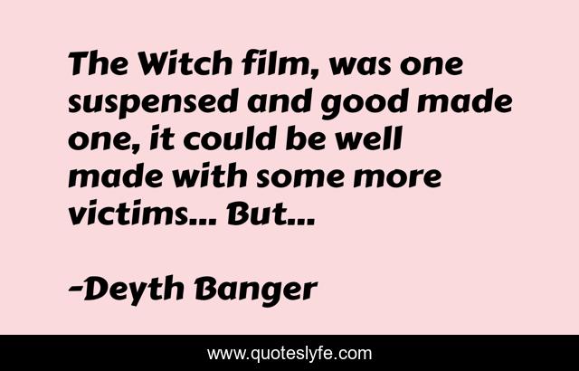 This page presents the quote "The Witch film, was one suspensed and good made one, it could be well made with some more victims... But...". Author of this quote is Deyth Banger. This quote is about comment, suspensed, witch, film,.