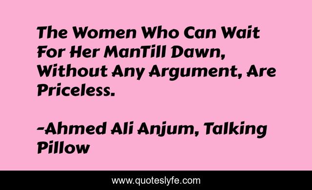 This page presents the quote "The Women Who Can Wait For Her ManTill Dawn, Without Any Argument, Are Priceless.". Author of this quote is Ahmed Ali Anjum, Talking Pillow. This quote is about priceless, dawn, man, women,.