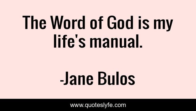 This page presents the quote "The Word of God is my life's manual.". Author of this quote is Jane Bulos. This quote is about life, bible, christian, christ, success, purpose, inspirational, quotes-about-life, quotes-to-live-by,.