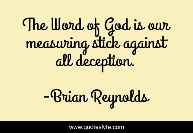 This page presents the quote "The Word of God is our measuring stick against all deception.". Author of this quote is Brian Reynolds. This quote is about christian, christianity-faith, truth-inspirational,.
