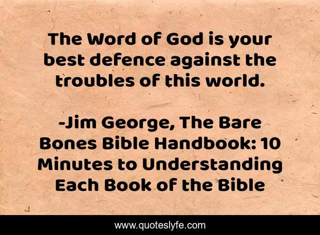 "Jim George, The Bare Bones Bible Handbook: 10 Minutes to Understanding Each Book of the Bible Quotes." Quoteslyfe.com, 2025. Sun. 07 Dec. 2025. <https://www.quoteslyfe.com/quote/The-Word-of-God-is-your-best-89786>.