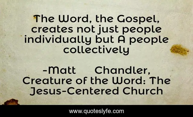 "Matt Chandler, Creature of the Word: The Jesus-Centered Church Quotes." Quoteslyfe.com, 2025. Mon. 08 Dec. 2025. <https://www.quoteslyfe.com/quote/The-Word-the-Gospel-creates-not-just-219950>.
